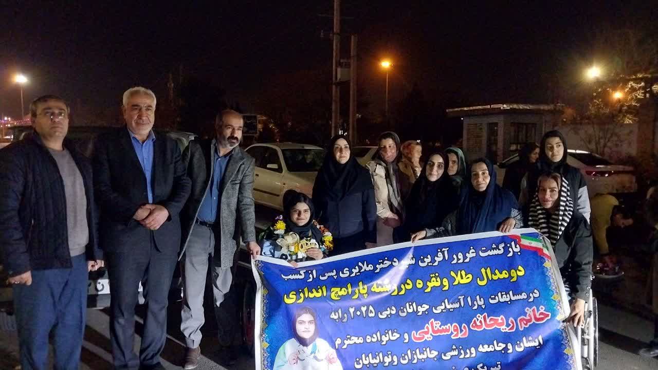 در راستای قهرمان پروری و قدر دانی از قهرمانانی که در میادین آسیایی و جهانی پرچم مقدس جمهوری اسلامی ایران را به اهتزاز در می آورند و افتخار می آفرینند طی مراسمی با حضور مسئولین ورزش و اداره بنیاد شهید و امور ایثارگران شهرستان و همچنین هیئت جانبازان و توانیابان از ریحانه روستایی قهرمان مسابقات پارا آسیایی جوانان دبی ۲۰۲۵ در رشته پارا مچ اندازی در بدو ورود ایشان به زادگاه خود در پایانه مسافربری استقلال ملایر استقبال شد .